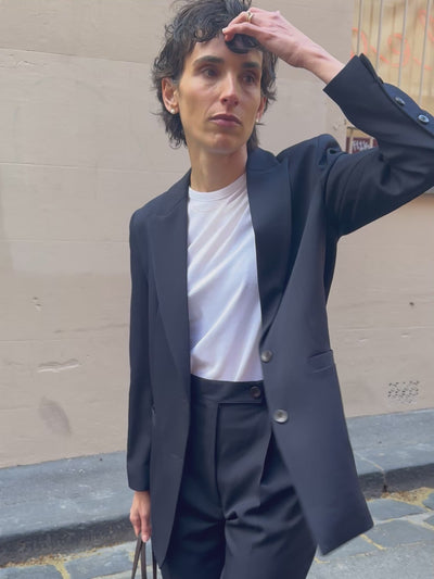 Recently back in stock, the Fred Blazer is a button front, masculine style, tailored blazer. It features functional welt pockets, peak lapels and buttons at the wrists. This classic blazer is designed to be worn for all occasions from relaxed to formal.