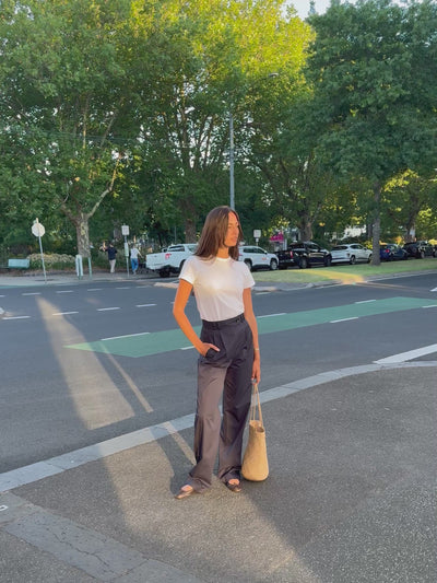 The Pete T is a flattering, slim fitting T made from a supremely soft Cotton Jersey. It is longer than our Jim T's, sitting at a mid length and comfortably tucks into mid-high waist pants/shorts/skirts.