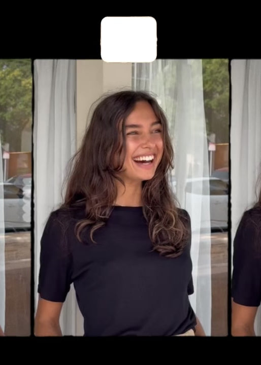 This T-Shirt is one we released many years ago and has been our mostly highly requested piece to bring back, so we're finally re-cutting some more! This stunning fabric is knitted in a boutique mill in Melbourne and is the most special, floaty fabric that feels heavenly soft on the skin. It has a beautiful drape on the body and is ever so slightly see through, but in a good way.